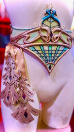 Je suis active, entre autre, dans le domaine du cabaret/théâtre pour la conception de costumes de scène et d’accessoires.